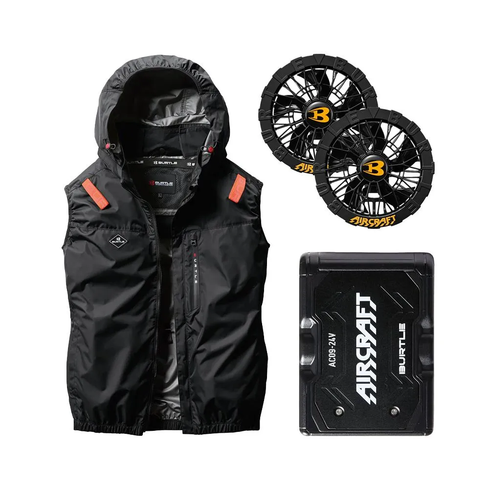 BURTLE AC2064-35 黑色 套裝組 側邊開孔★風扇&電池顏色隨機(含帽無袖背心 空調服 風扇服)