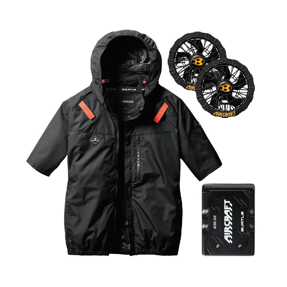 BURTLE AC2066-35 黑色 套裝組 側邊開孔★風扇&電池顏色隨機(含帽短袖衣服 空調服 風扇服)