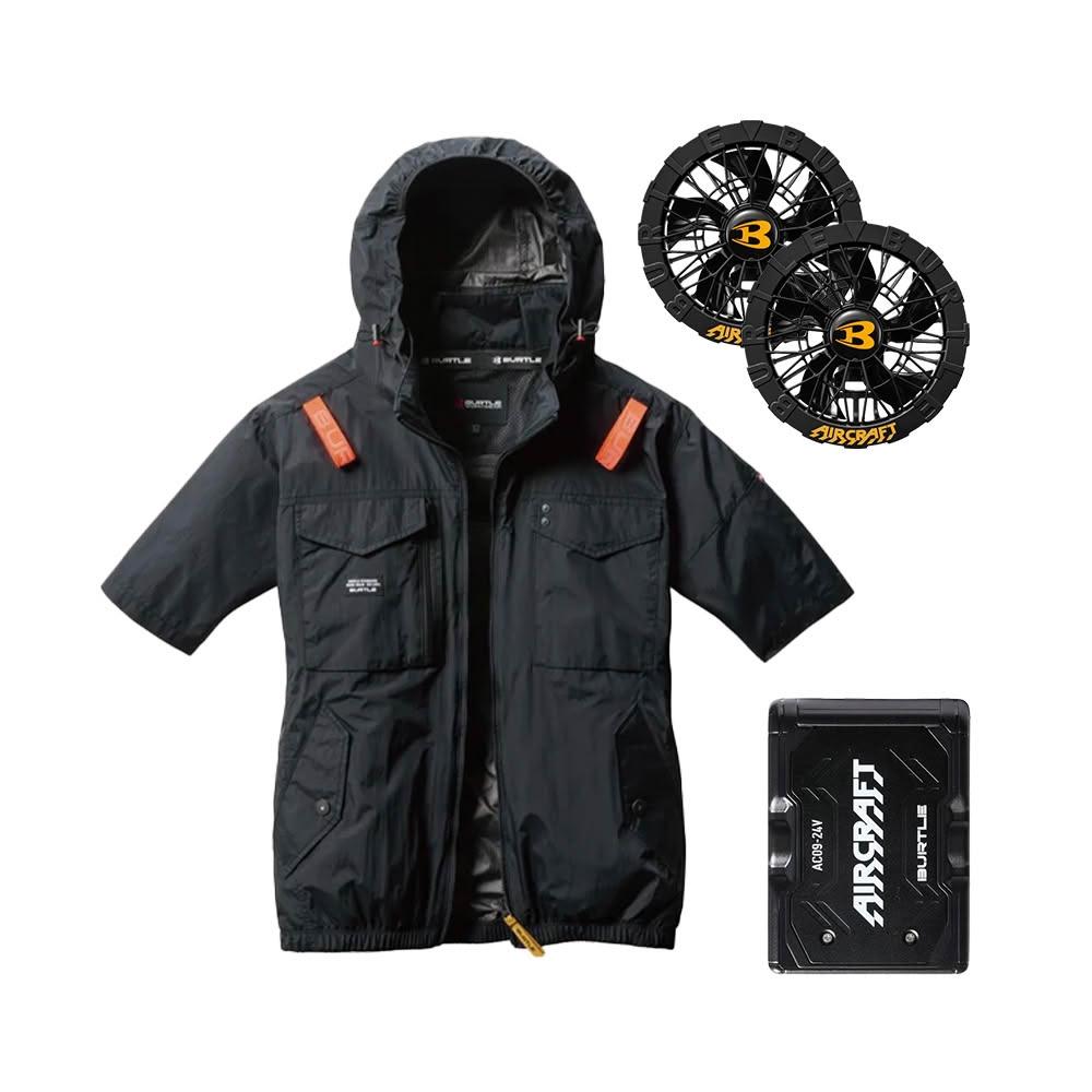 BURTLE AC1156-35 黑色 套裝組★風扇&電池顏色隨機(含帽短袖上衣 空調服 工作服 風扇服)