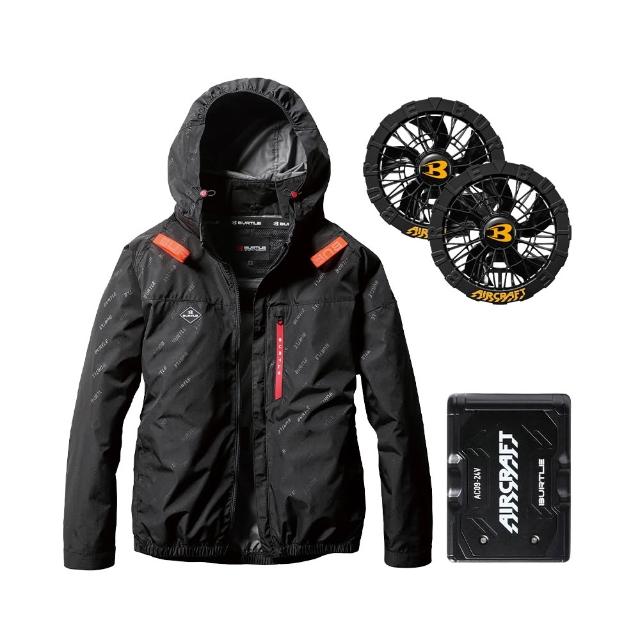 BURTLE AC2061-71 LOGO黑色 套裝組 側邊開孔★風扇&電池顏色隨機(含帽長袖外套 空調服 風扇服)