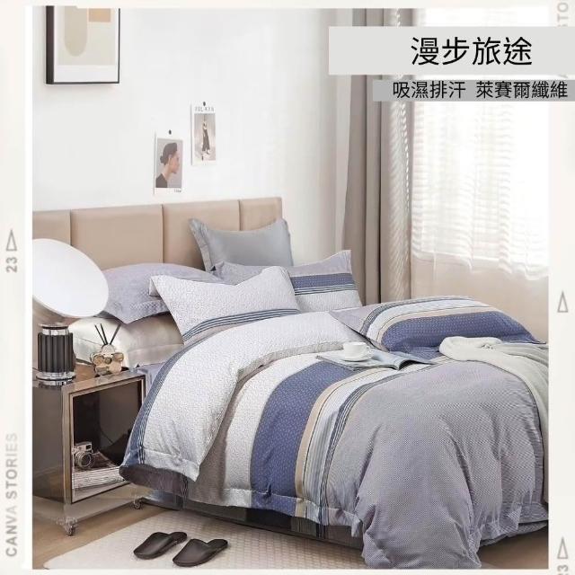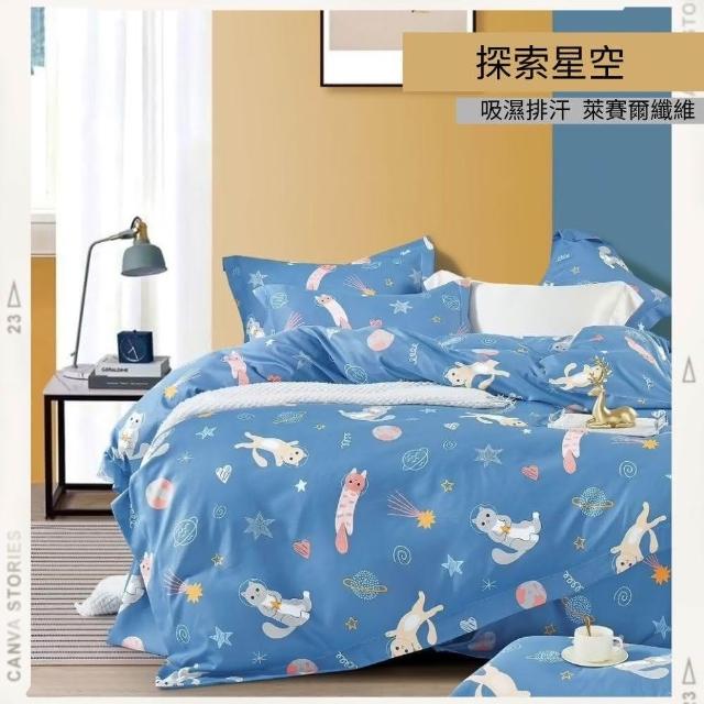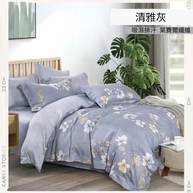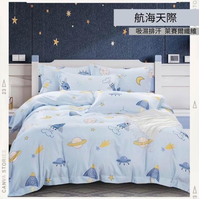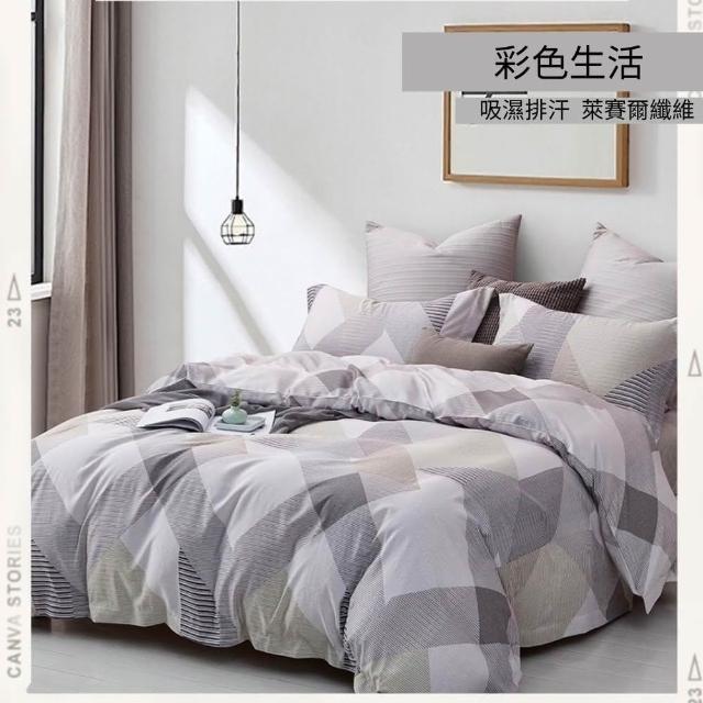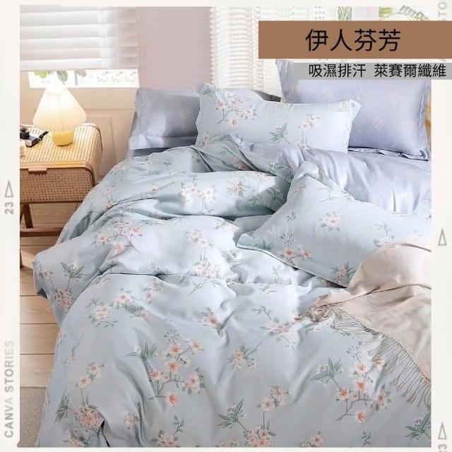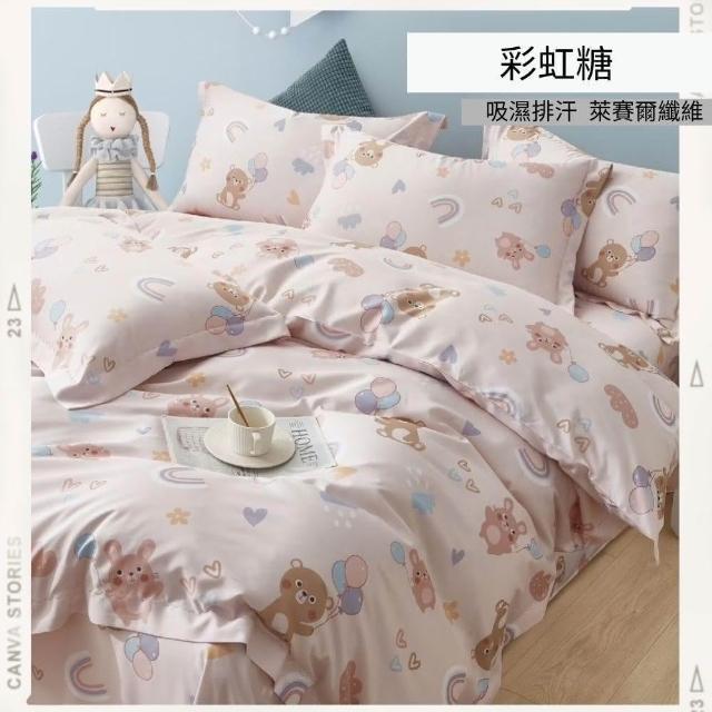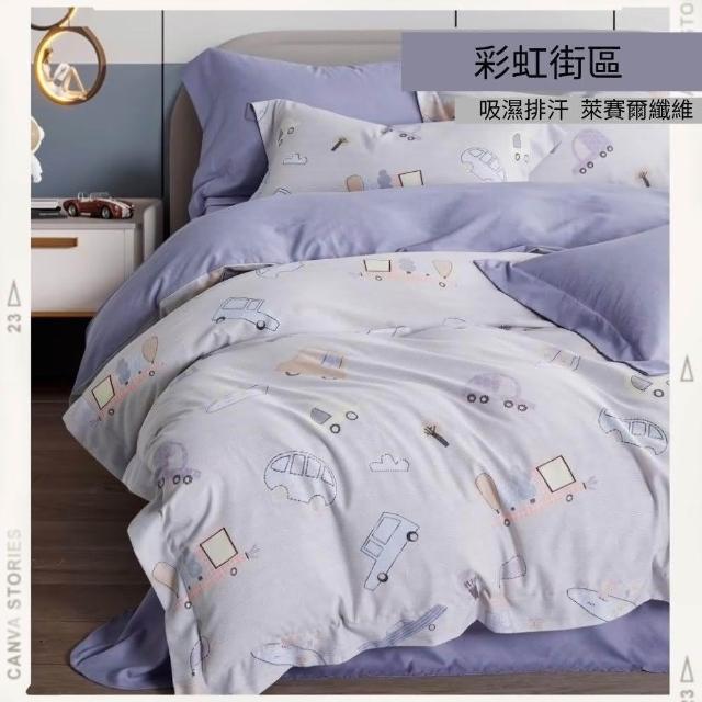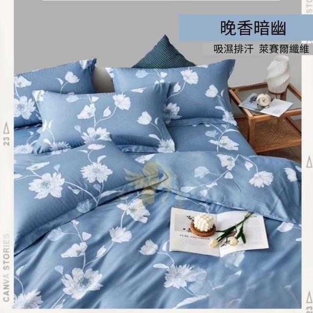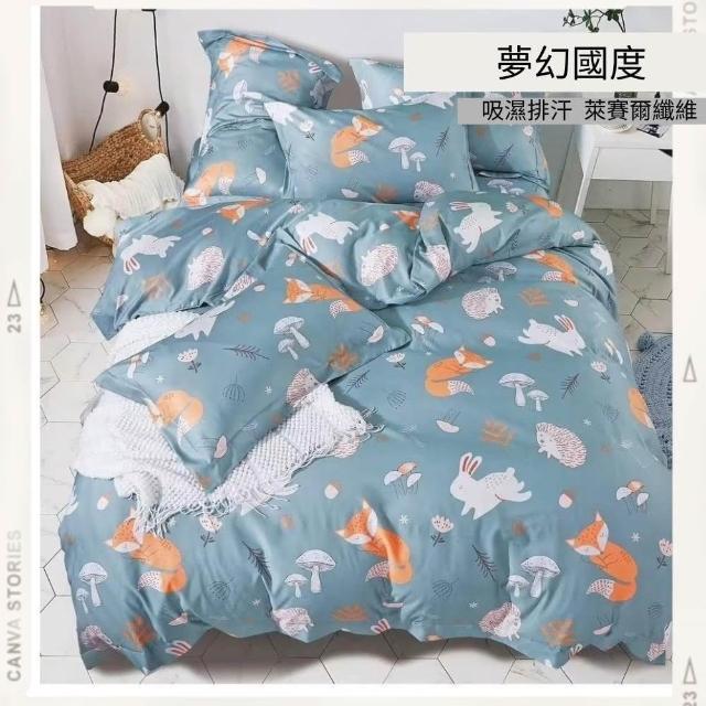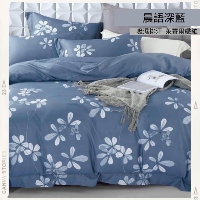 不賴床多色任選 吸濕透氣 萊賽爾天絲 床包枕套三件組-雙人5尺(雙人床包+枕套2入) 親膚 舒適 印花