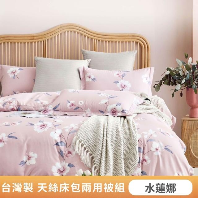 不賴床台灣製 萊賽爾天絲床包兩用被四件組-雙人5尺 雙人床包+枕套2入+鋪棉兩用被 多款任選