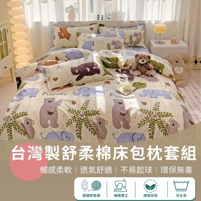 不賴床台灣製 舒柔棉床包組-單人3.5尺(單人床包+枕套1入) 兩件組 多款任選 卡通 花草 線條