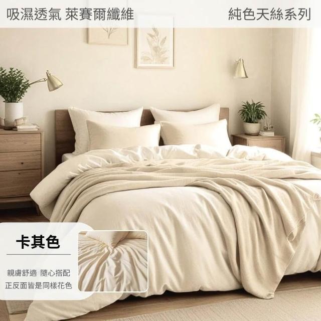 不賴床萊賽爾天絲素色床包枕套三件組-雙人加大6尺 雙人加大床包+枕套2入 吸濕透氣 親膚
