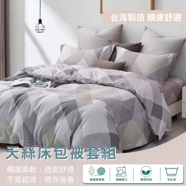 不賴床台灣製 天絲床包被套四件組B-多尺寸 單人/雙人/加大/特大 被套 萊賽爾 透氣 抗菌 多色任選
