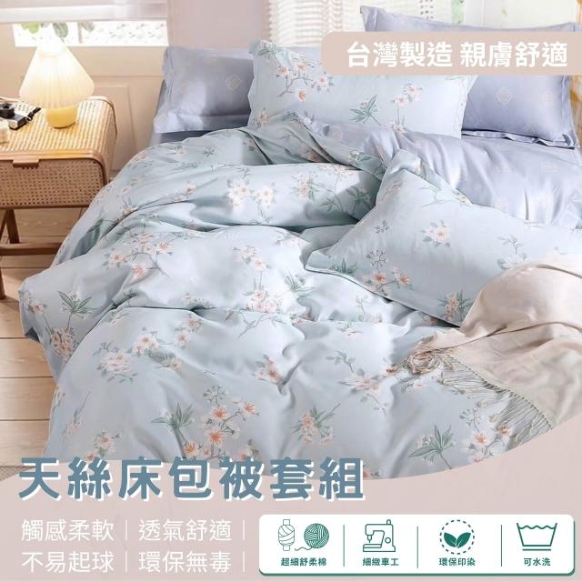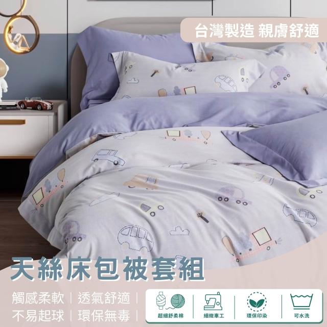 不賴床台灣製 天絲床包被套四件組A-多尺寸 單人/雙人/加大/特大 被套 萊賽爾 天絲床包 透氣 抗菌 多色任選