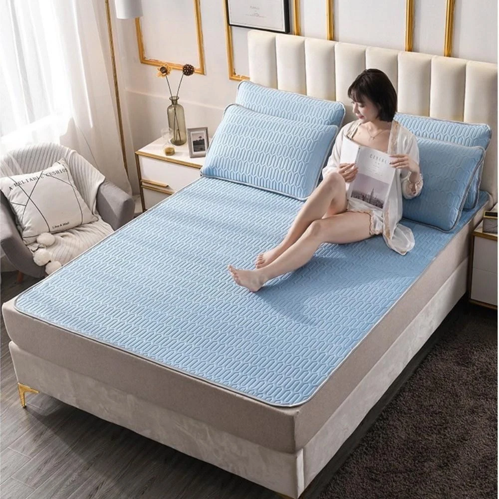 不賴床買一送一 可水洗冰絲乳膠涼蓆 送枕套 素色 乳膠 涼墊