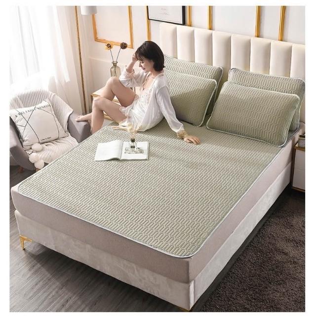 不賴床買一送一 可水洗冰絲乳膠涼蓆 送枕套 素色 竹蓆 乳膠 涼墊
