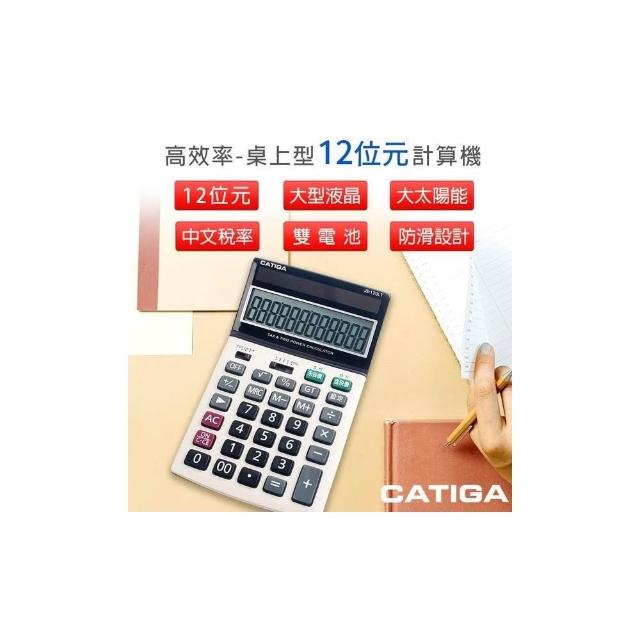 CATIGA 計算機 JS-120LT 中文稅率 商用12位數 /一台入 中長型 大太陽能 稅率功能 螢幕可抬