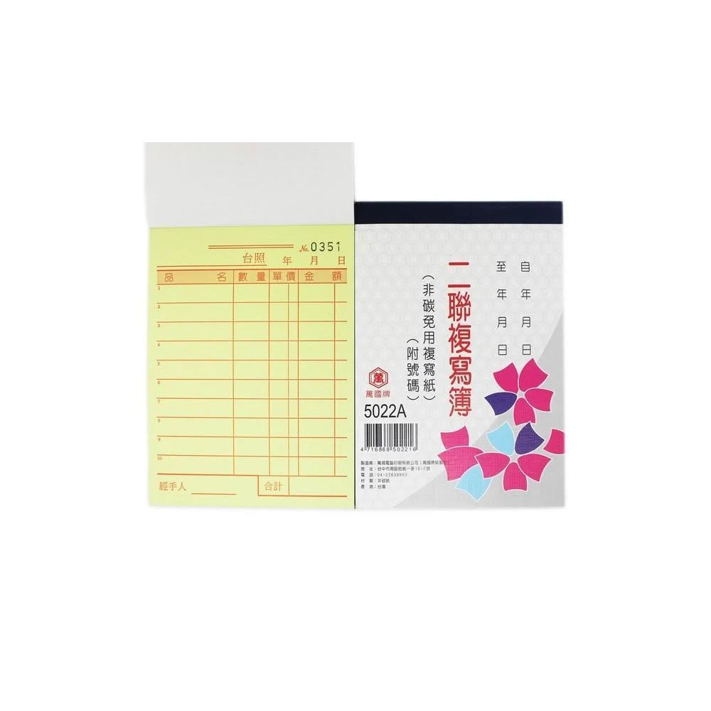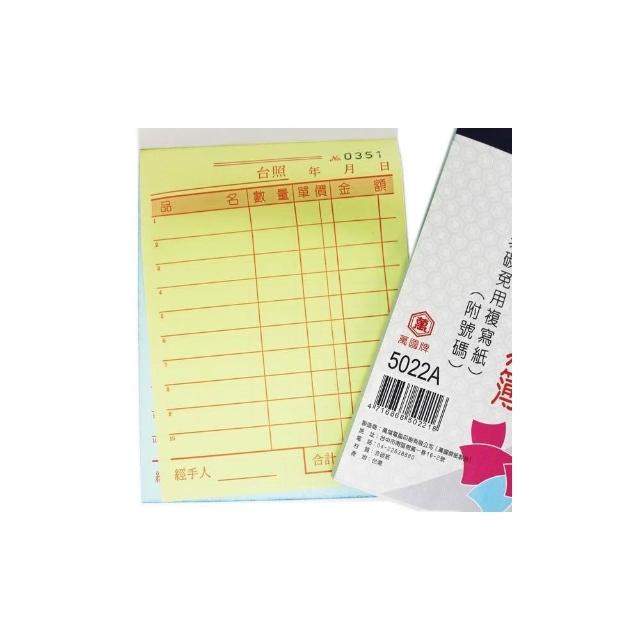 WANNGWO 萬國牌萬國牌 5022A 二聯複寫簿 (厚)/一包20本入 72開直式 估價單 附號碼 50組 送貨單 非碳 免用複