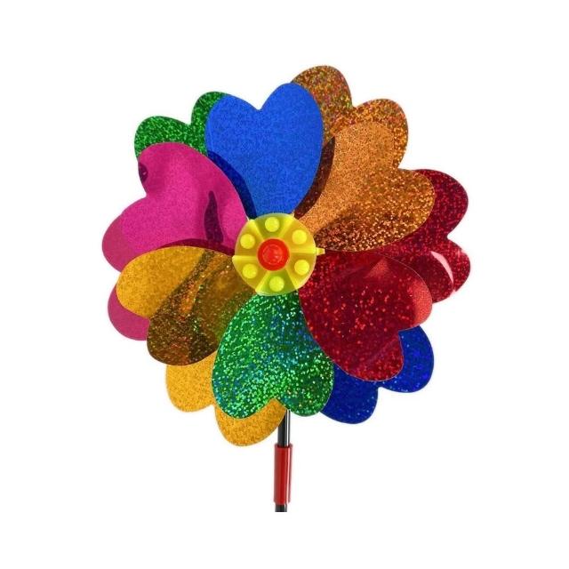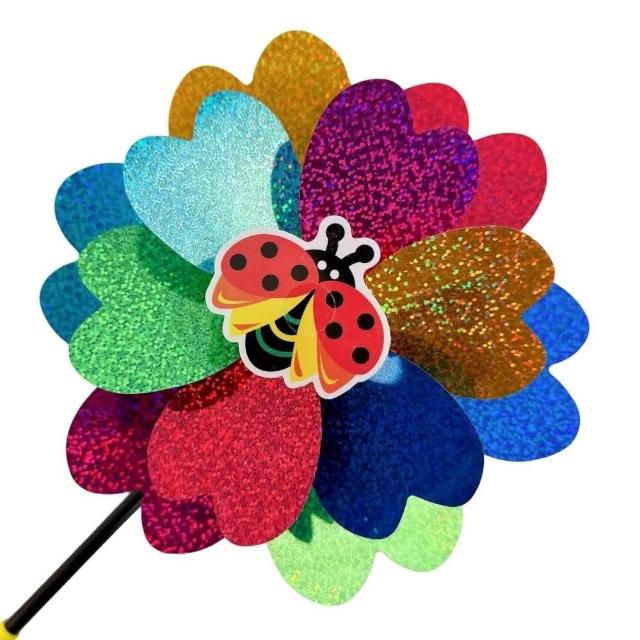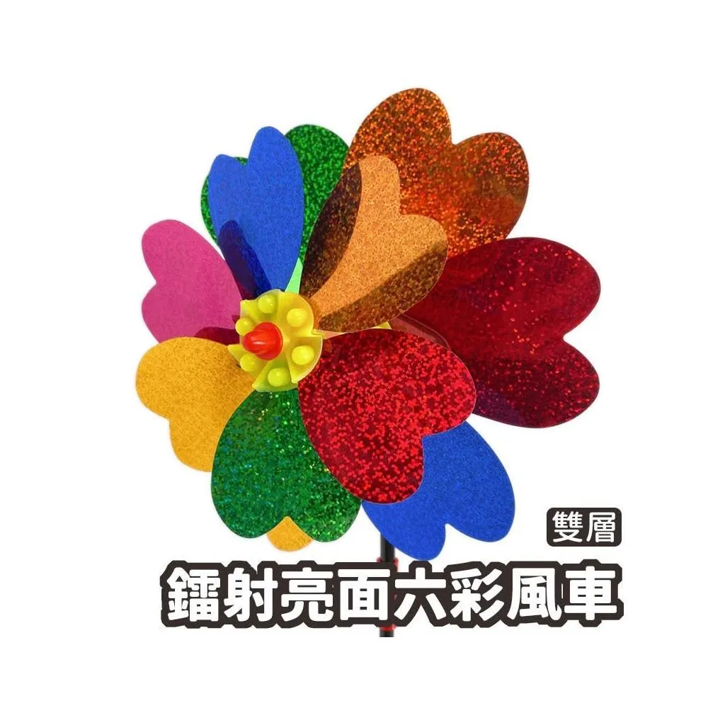 鐳射亮面六彩風車 (雙層) 雙面眩光 驅鳥風車 反光風車 趕鳥旋轉風車 趕鳥風車 風車玩具 花園風車 AA6724