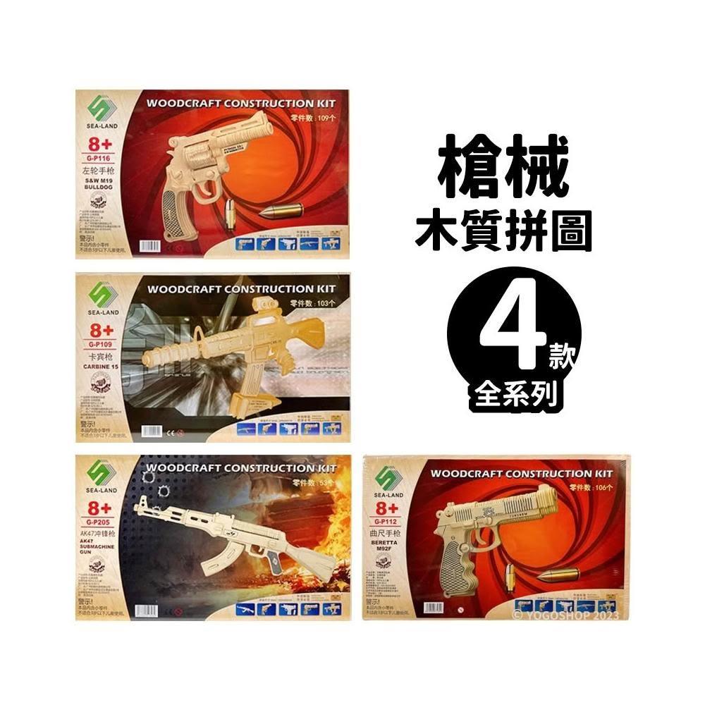 DIY木質拼圖 槍械模型 A2/一組入 四聯木製拼圖 3D立體拼圖 槍模型 3D拼圖 木製模型 玩具槍 左輪手槍 衝鋒槍