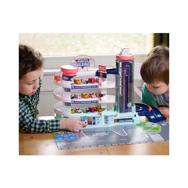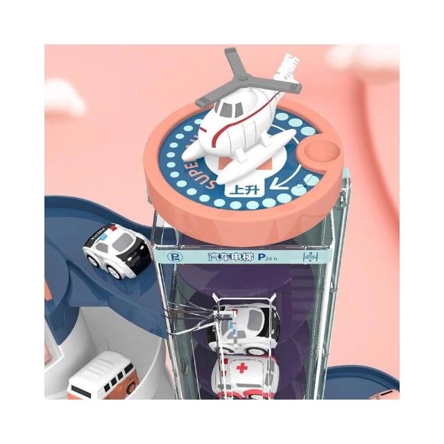 托思奇 軌道汽車大樓停車場 T103-11 (附電池) /一盒入 四層停車大樓 tuosiqi 旋轉電梯
