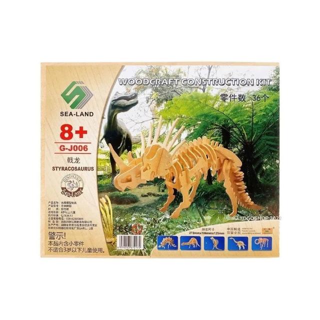 DIY木質拼圖 恐龍模型 B2 四聯木製拼圖 恐龍拼圖 3D立體拼圖 3D拼圖 木製模型 暴龍 霸王龍 戟龍 三角龍