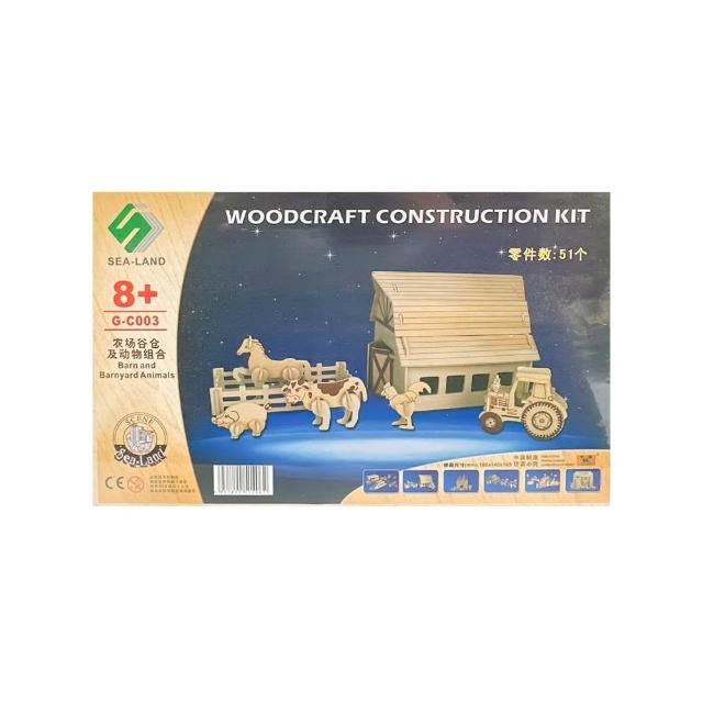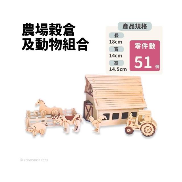 DIY木質拼圖 農場穀倉及動物組合 G-C003 /一組入 A3 四聯木製拼圖 3D立體拼圖 3D拼圖 模型屋 木製模型