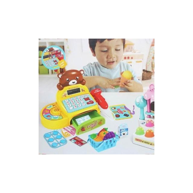熊熊超市收銀機玩具 冰淇淋小舖 888-10(附電池)/一個入 聲光過家家仿真收銀機帶計算機-生