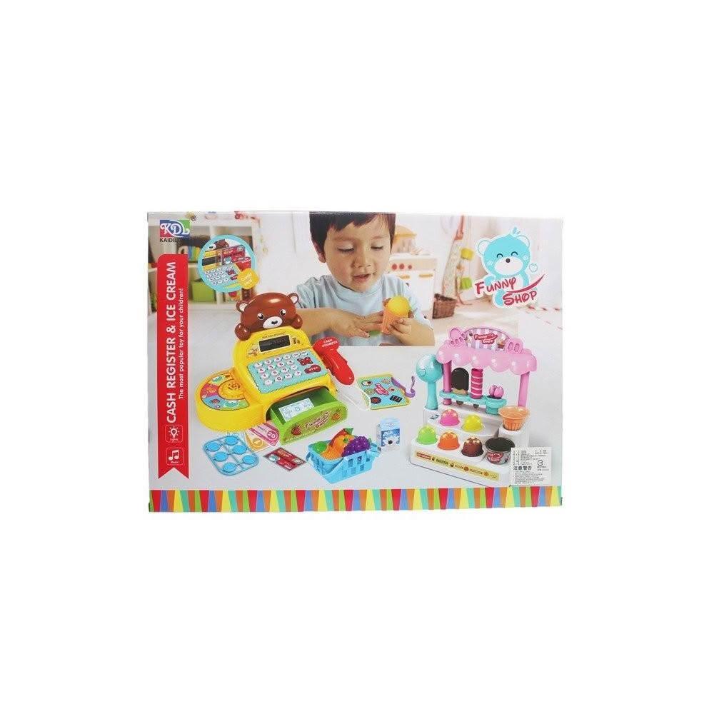 熊熊超市收銀機玩具 冰淇淋小舖 888-10(附電池)/一個入 聲光過家家仿真收銀機帶計算機-生
