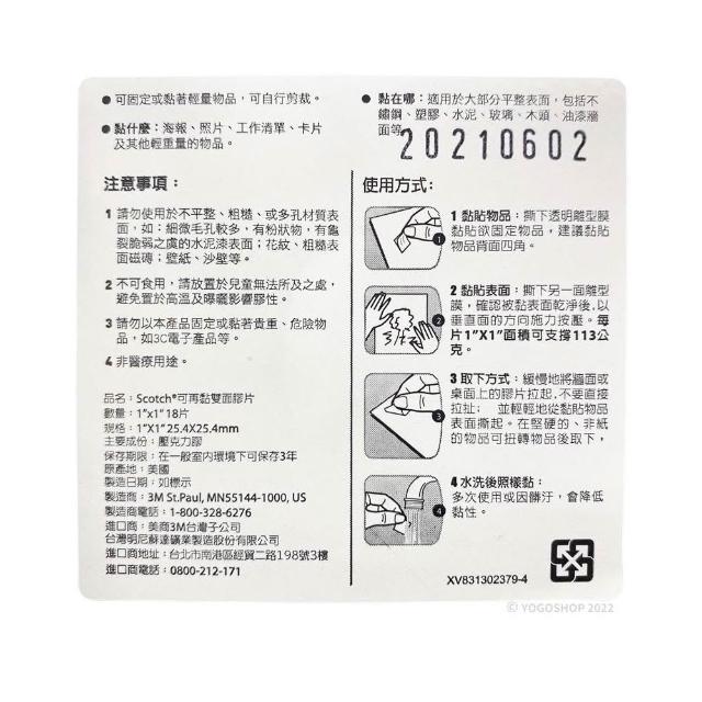3M3M 可再黏雙面膠片 R100S /一卡入 可再貼 雙面膠 重複貼 可水洗 雙面膠帶 不易殘膠Scotch