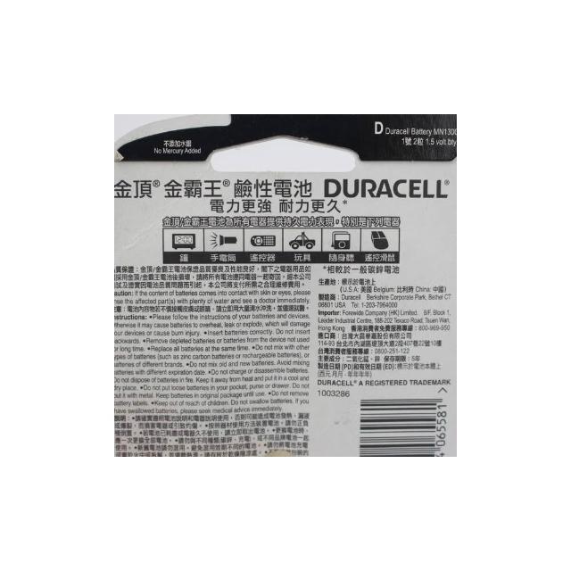 金頂鹼性電池 1號電池 D-2 /一卡2個入 金頂電池 Duracell 1號鹼性電池 鹼性 鋅錳電池 乾電池 公司貨
