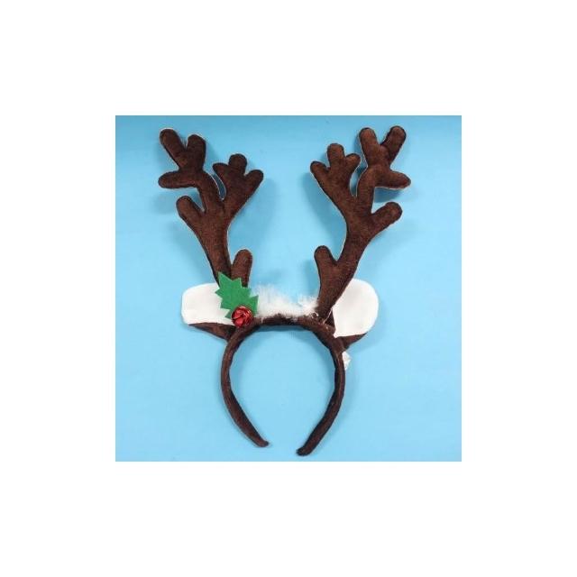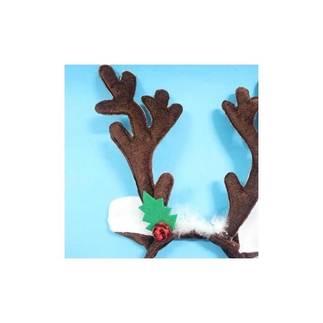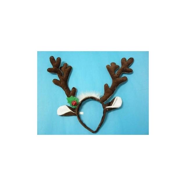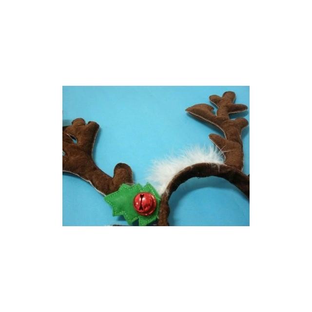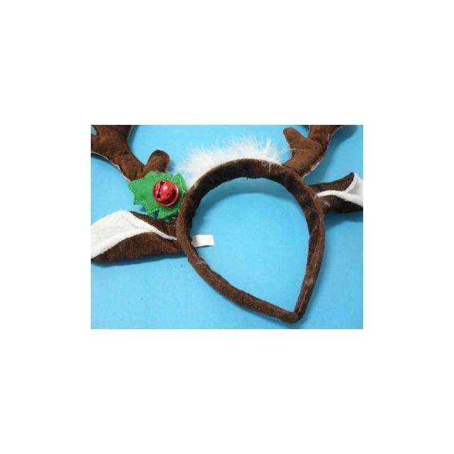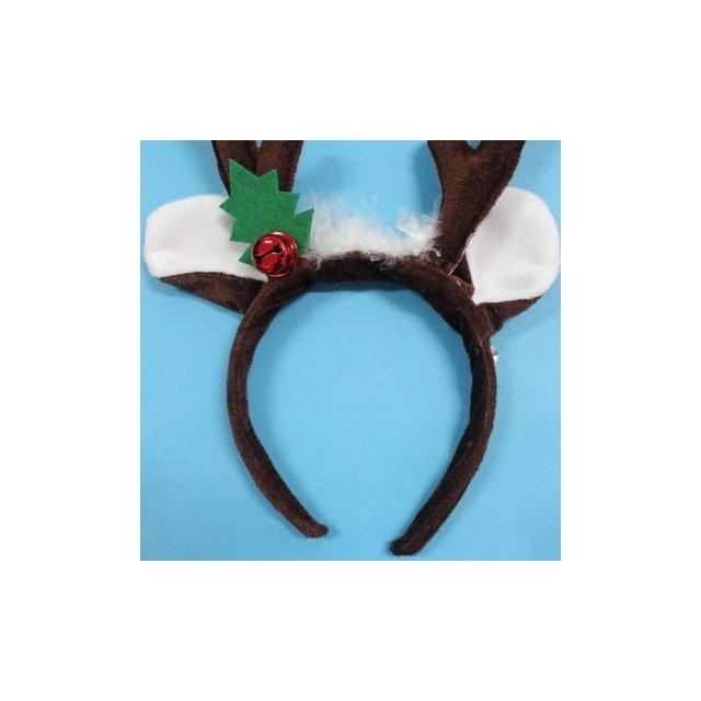 聖誕鹿角頭箍 大咖啡色 聖誕髮箍/一個入 白羽毛耳朵鈴噹 絨布面鹿角髮夾 鹿角頭飾 可愛麋鹿角 聖誕頭圈-AA