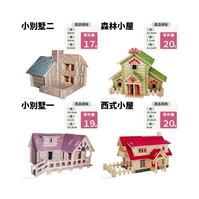 DIY木質拼圖 房屋模型 B2/一組入 四聯木製拼圖 3D立體拼圖 3D拼圖 模型屋 木製模型 房子模型 小屋模型 -阡