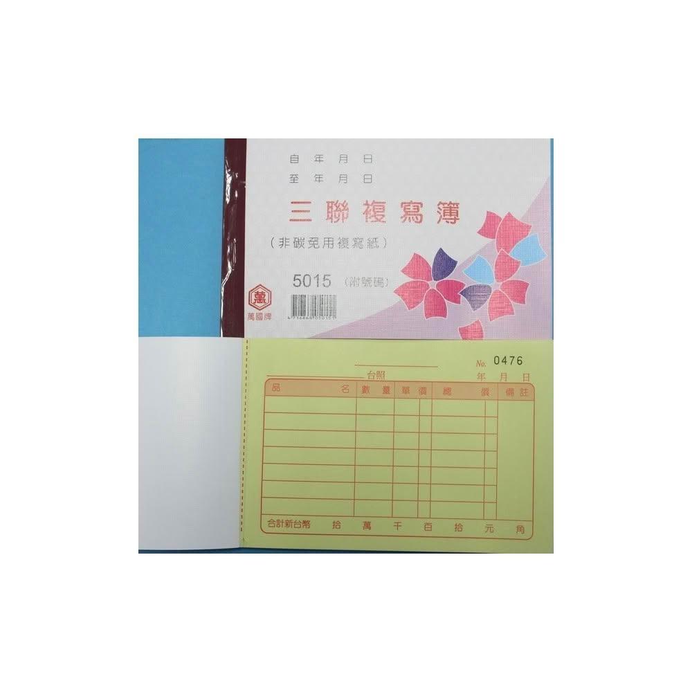 WANNGWO 萬國牌萬國牌 5015 三聯複寫簿 56K橫式估價單 送貨單(25組.附號碼)/一包20本入 非碳 免用複寫紙