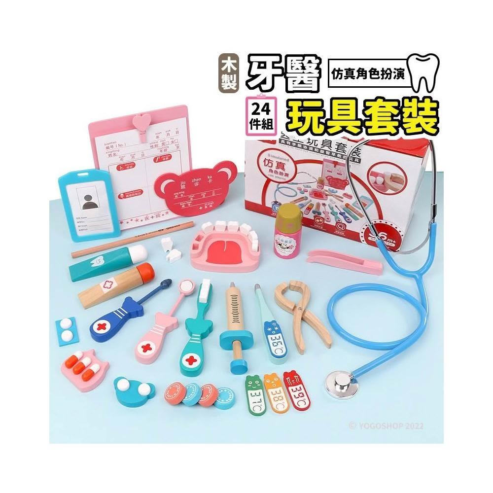 木製 牙醫玩具 /一盒24件組入兒童醫生玩具組 小醫生玩具 醫生組 醫生遊戲 聽診器 木製玩具 扮家家酒 親子玩具