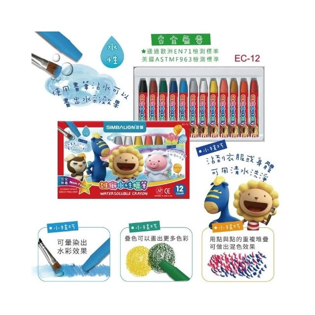 SIMBALION 雄獅文具雄獅 12色 水性蠟筆 EC-12 /一盒入 奶油獅 雄獅蠟筆 無毒蠟筆 兒童蠟筆 蠟筆組 大蠟筆 畫畫 塗鴉 繪畫