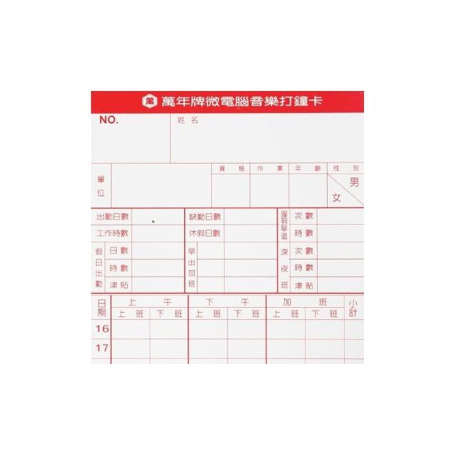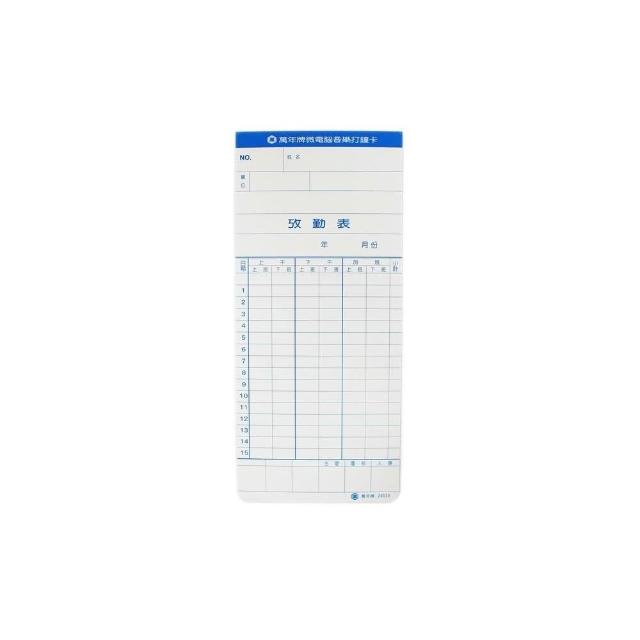 萬年牌 微電腦打鐘卡 20120 (薄型) /一包100張入 萬國牌 出勤卡 考勤卡 打卡紙