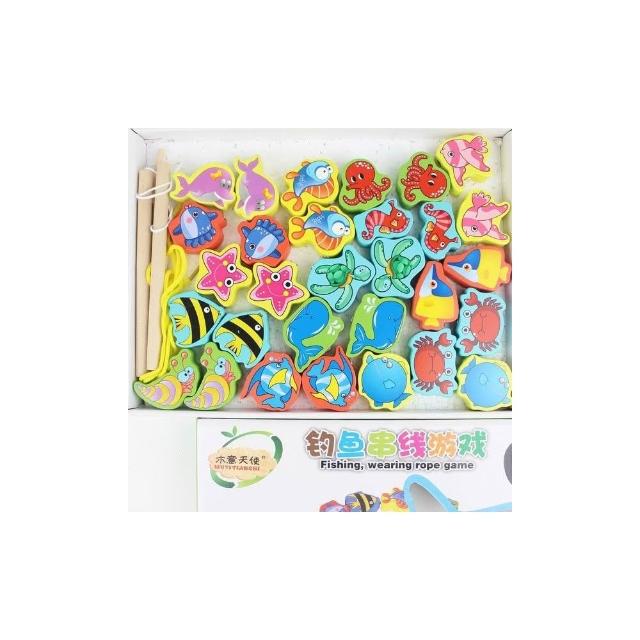 木製釣魚 MY-1003 釣魚串線遊戲組 約35pcs/一盒入 YF11790