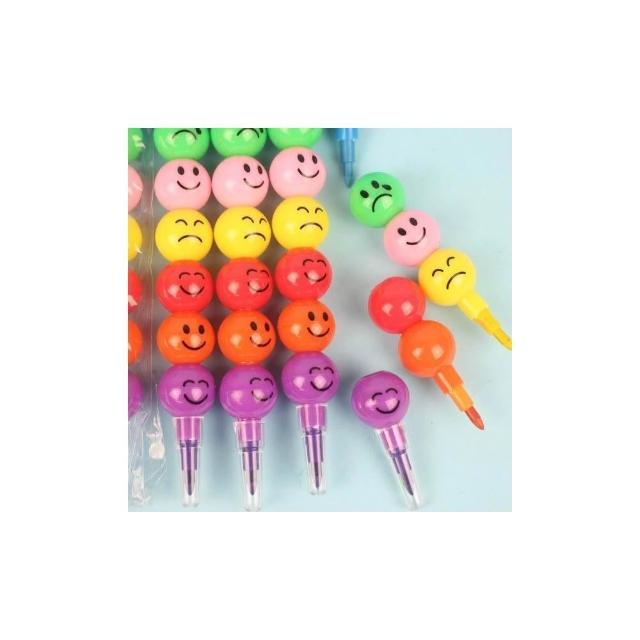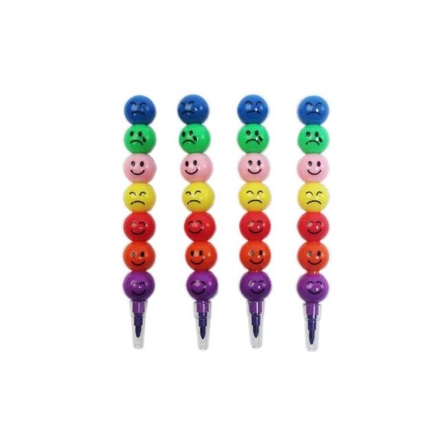 7色笑臉彩虹筆 表情圓球丸子蠟筆 笑臉蠟筆 笑臉免削色筆 笑臉鉛筆糖葫蘆蠟筆 多段式蠟筆 造型蠟筆 -AA5930