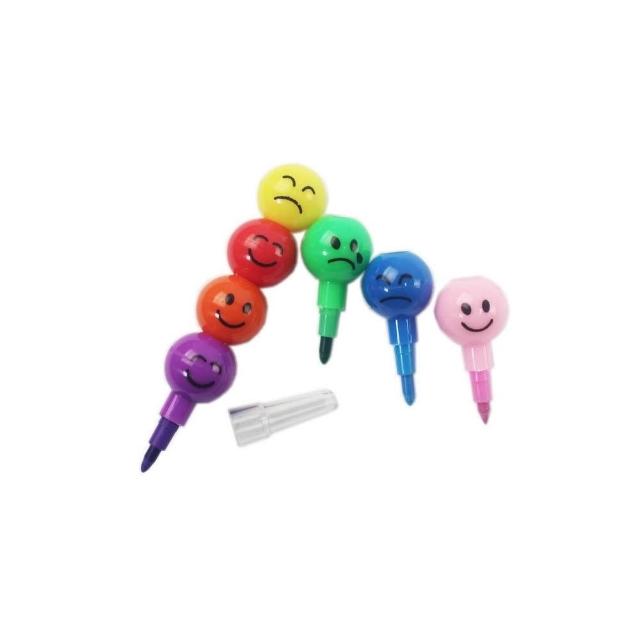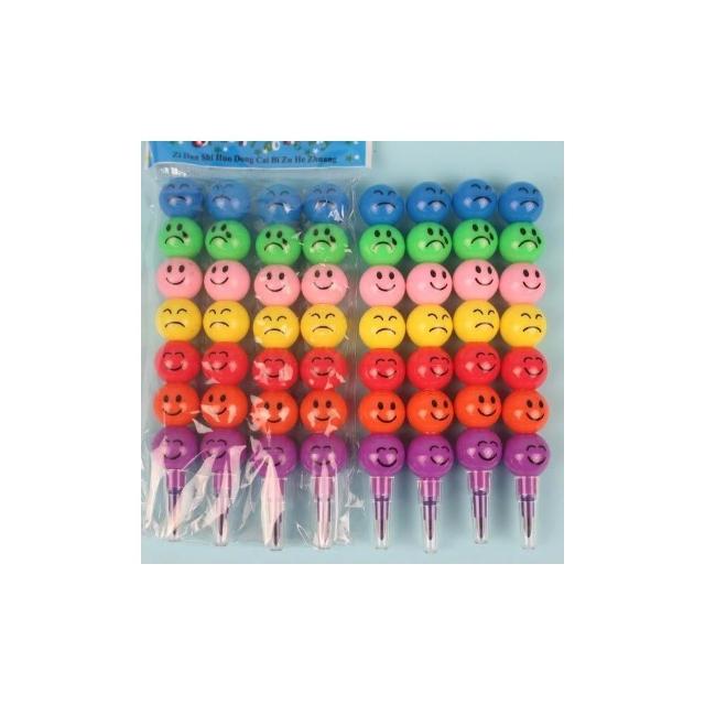 7色笑臉彩虹筆 表情圓球丸子蠟筆 笑臉蠟筆 笑臉免削色筆 笑臉鉛筆糖葫蘆蠟筆 多段式蠟筆 造型蠟筆 -AA5930