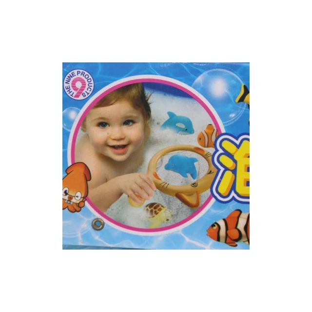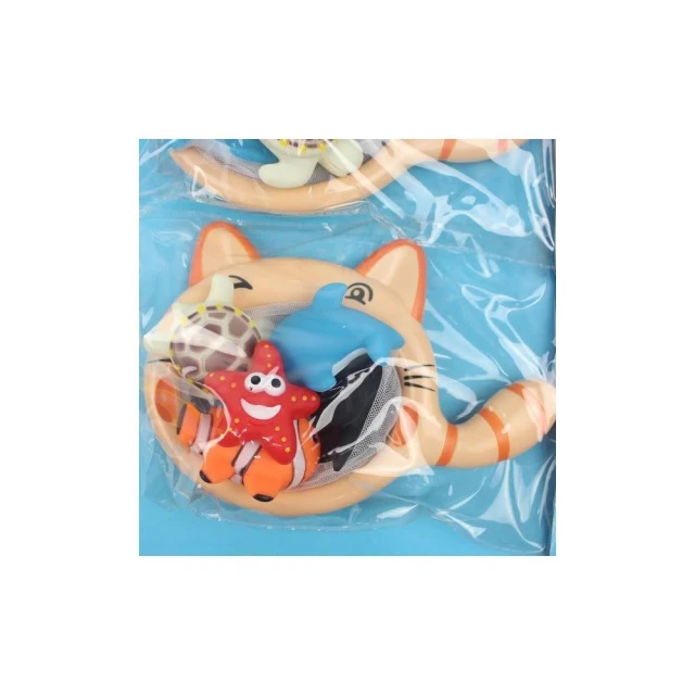 5入啾啾軟膠洗澡玩具+貓網 小丑魚 605-2 /一袋入 D637 撈魚 海底系列 戲水玩具 ST安全玩具