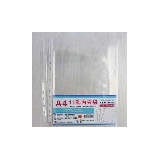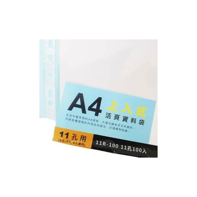 11孔內頁袋 A4資料夾 透明補充內頁袋/一包100張入 上入式活頁資料袋活頁 PP透明補充內頁袋 台灣製