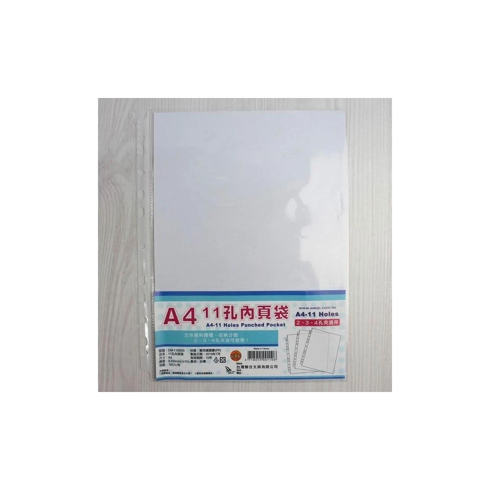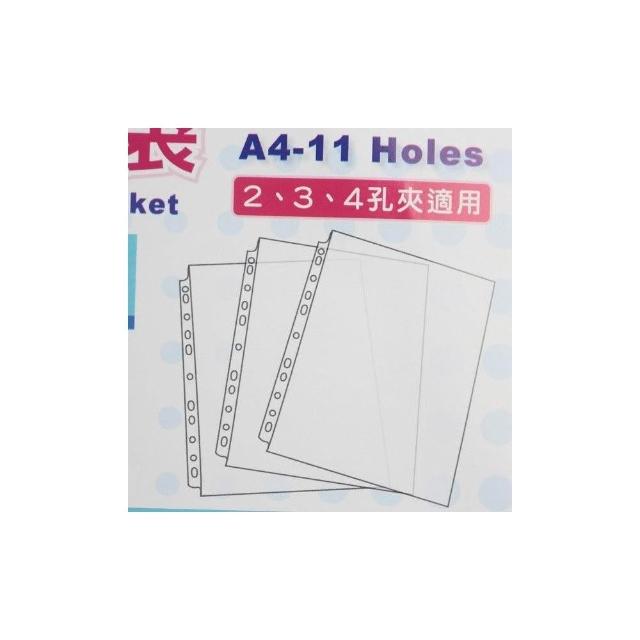 11孔內頁袋 A4資料夾 透明補充內頁袋/一包100張入 上入式活頁資料袋活頁 PP透明補充內頁袋 台灣製