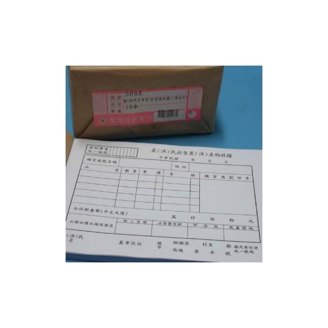 WANNGWO 萬國牌萬國牌 5068 二聯農漁民出售農漁產物收據 (50組)/一包10本入 32開橫式收據 非碳 免用複寫紙
