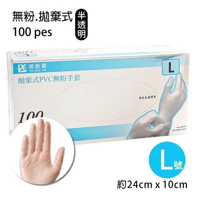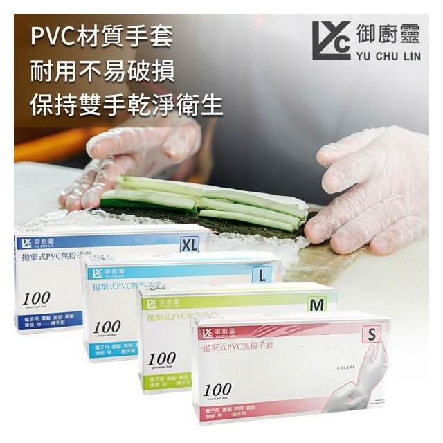御廚靈 拋棄式PVC無粉手套 /一盒100支入 PVC手套 S M L XL 清潔手套 拋棄式手套 衛生手套 美髮 護手