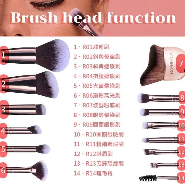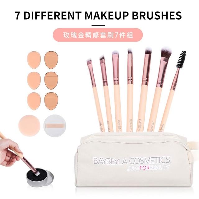 BAYBEYLA 貝貝拉 玫瑰金眼部精修套刷14件組(買7送7) 眼部刷 遮瑕刷 刀鋒刷 睫毛捲 睫毛刷 眉刷 拇指刷