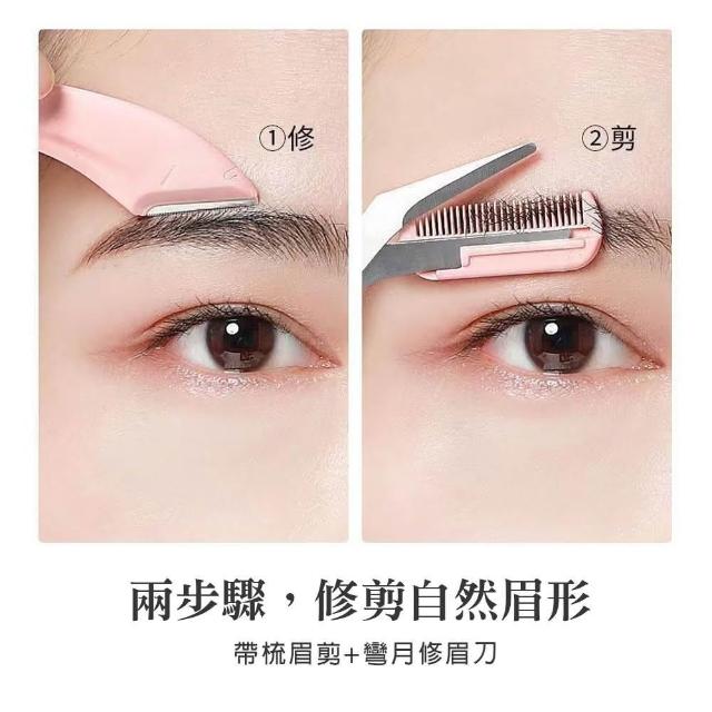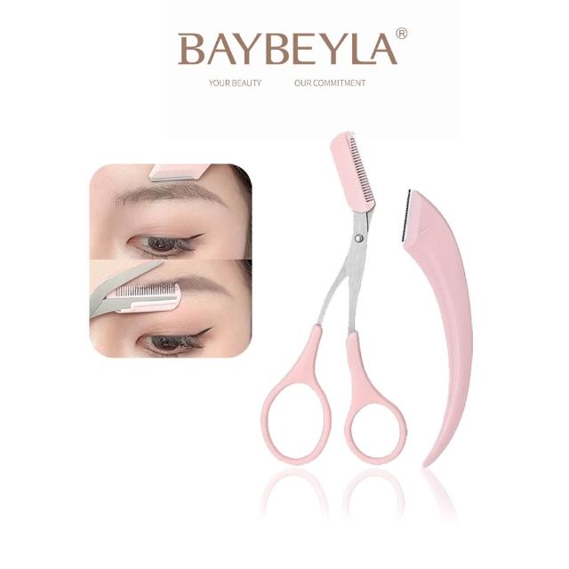 BAYBEYLA 貝貝拉 彎月修眉刀2件組 梳眉剪+修眉刀 ( 除毛刀 安全眉刀 新月眉刀 眉刀 修眉刀 日本修眉刀 )