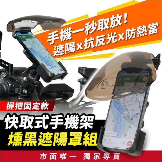 XILLA機車 快取式手機架+遮陽罩組 車把握把固定款(機車手機架 導航架 手機支架)