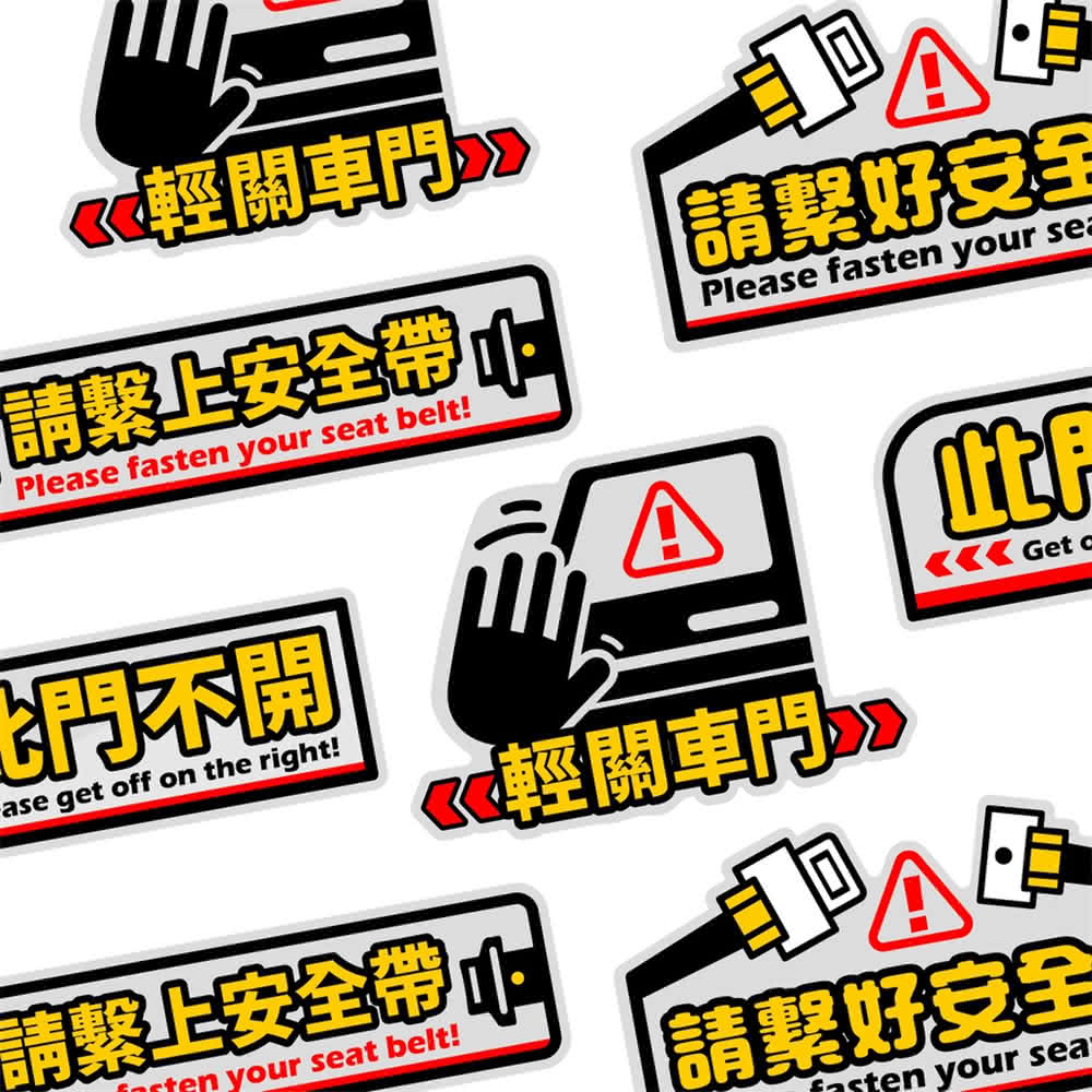 XILLA3M 工程級反光貼紙 提醒小語 汽車貼紙(機車貼紙 車身貼紙 請繫上安全帶 輕關車門 此門不開 輕手關車門 安全帶)