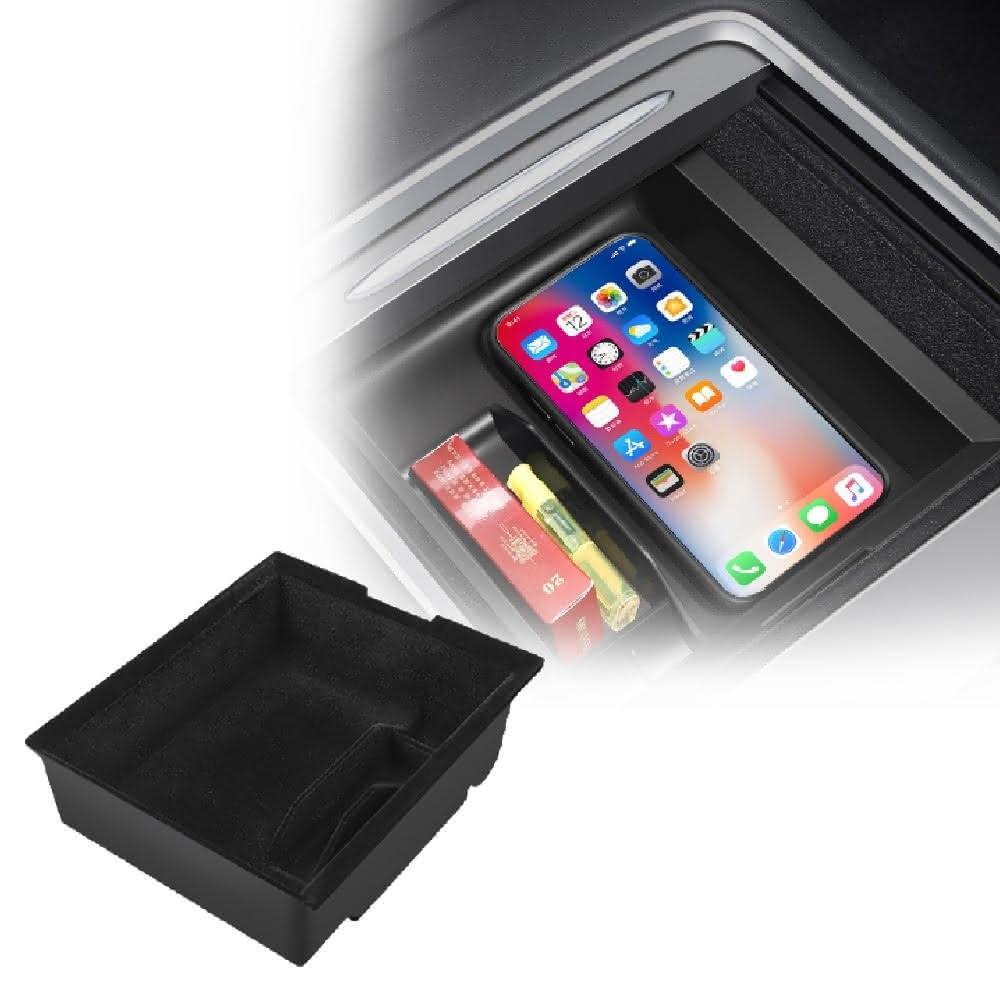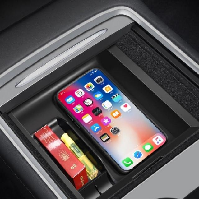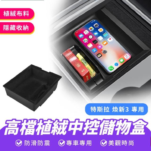 XILLA特斯拉 Tesla 煥新版 model 3 Y 高檔植絨中控儲物盒中控 收納箱 ABS 矽膠 雙層