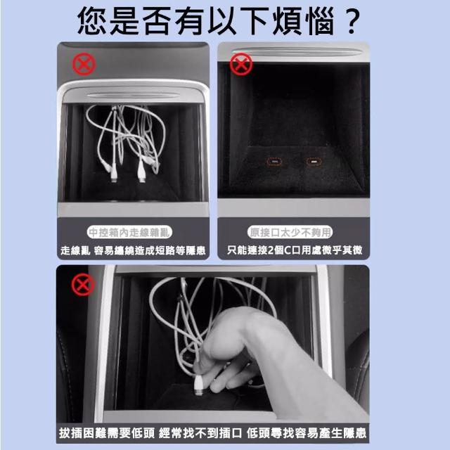 XILLA特斯拉 Tesla Model 3 y 中控集線收納器(車用 中控 集線器 車用 USB 穿線盒 擴充座)