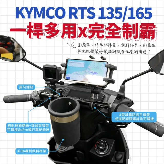 XILLA鋁合金萬用 橫桿 置物橫桿 平橫桿 KYMCO RTS 125 135 165 專用(手機架 擴充桿 改裝 配件)