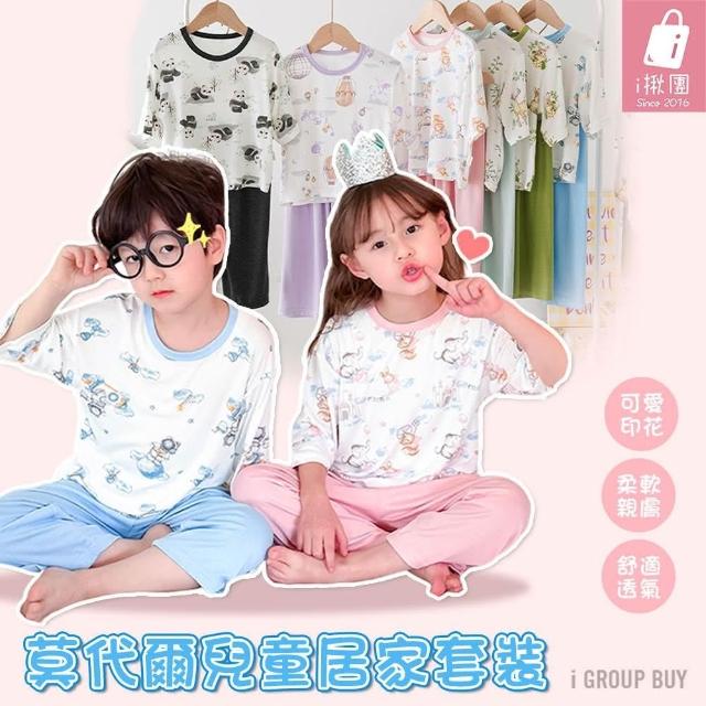 D02-21 莫代爾北歐風兒童睡衣套裝(居家套裝 男童女童 七分袖九分褲 居家服 印花 空調服)