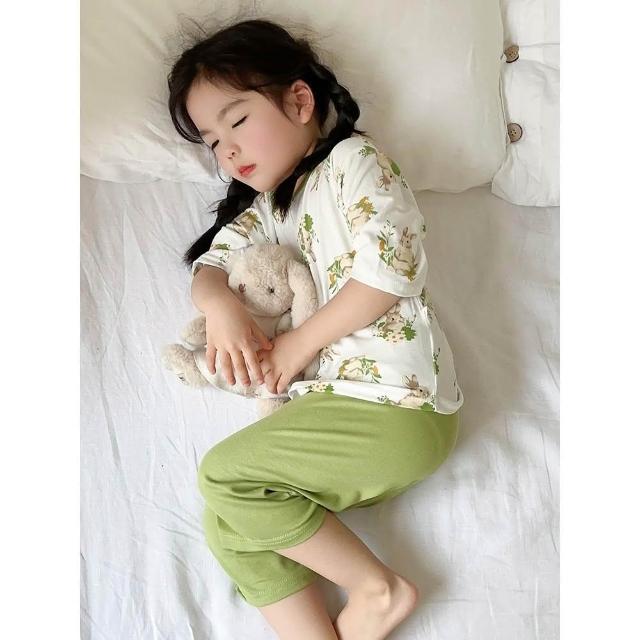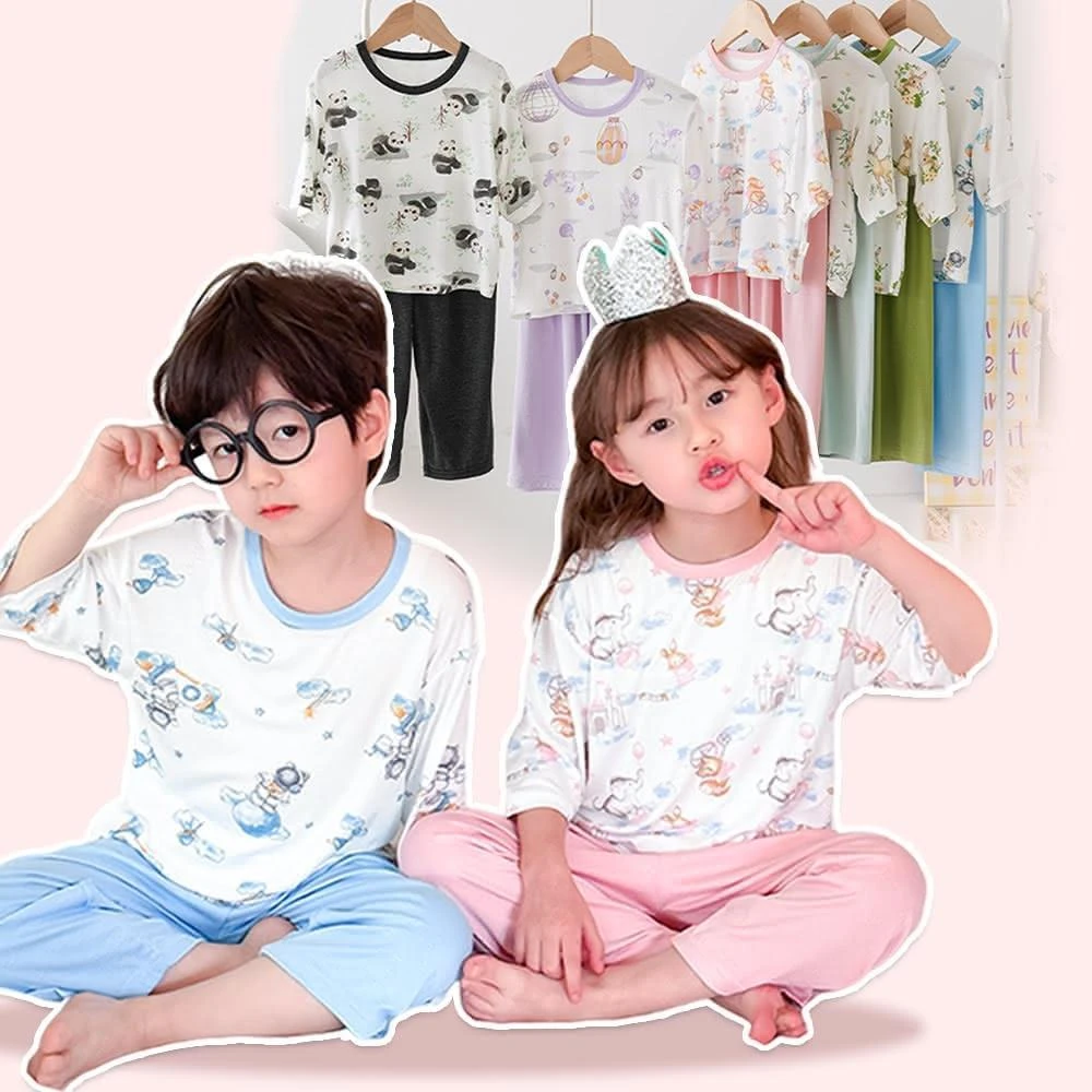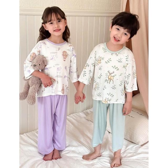 D02-21 莫代爾北歐風兒童睡衣套裝(居家套裝 男童女童 七分袖九分褲 居家服 印花 空調服)