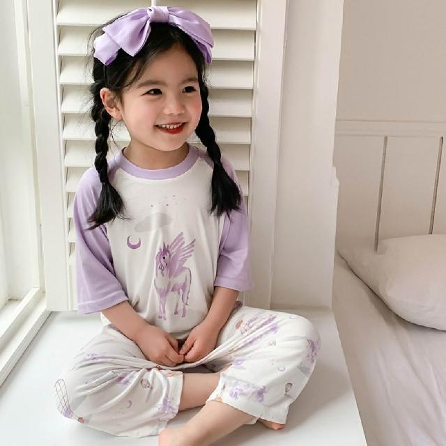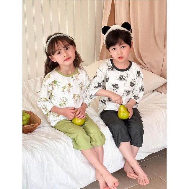 D02-21 莫代爾北歐風兒童睡衣套裝(居家套裝 男童女童 七分袖九分褲 居家服 印花 空調服)