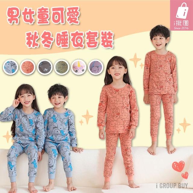 i揪團 純棉中大童長袖睡衣套裝內衣套裝 兒童薄款家居服 兩件式 兒童睡衣 滿版印花長袖長褲(F42-1)
