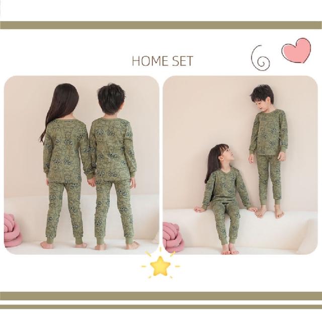 i揪團 純棉中大童長袖睡衣套裝內衣套裝 兒童薄款家居服 兩件式 兒童睡衣 滿版印花長袖長褲(F42-1)