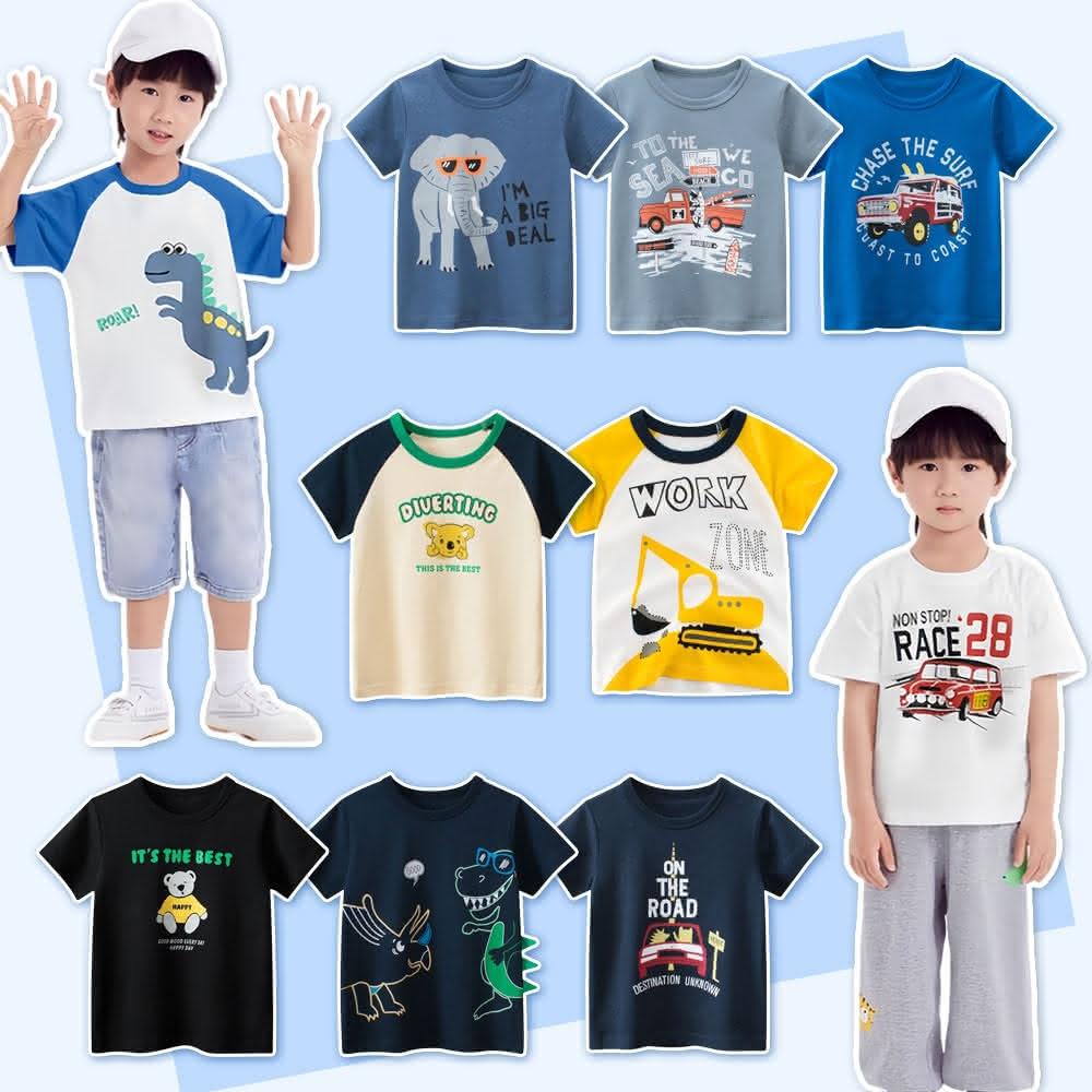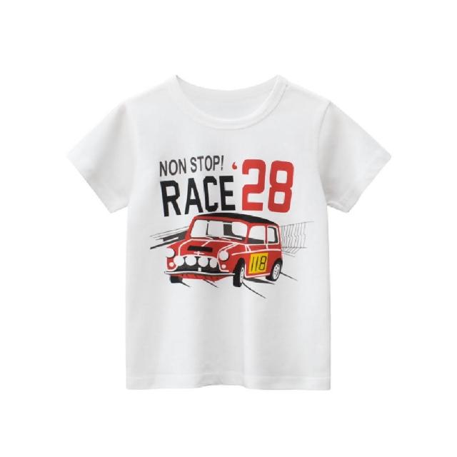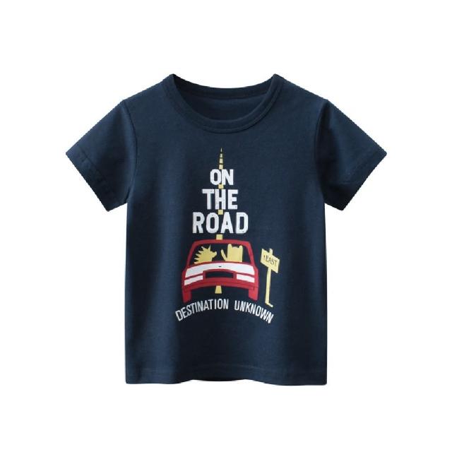 i揪團 韓版夏季男童純棉短袖T恤 男童短袖上衣 男童短t 兒童短袖 卡通印花上衣 車車大象熊熊恐龍(B00-7)